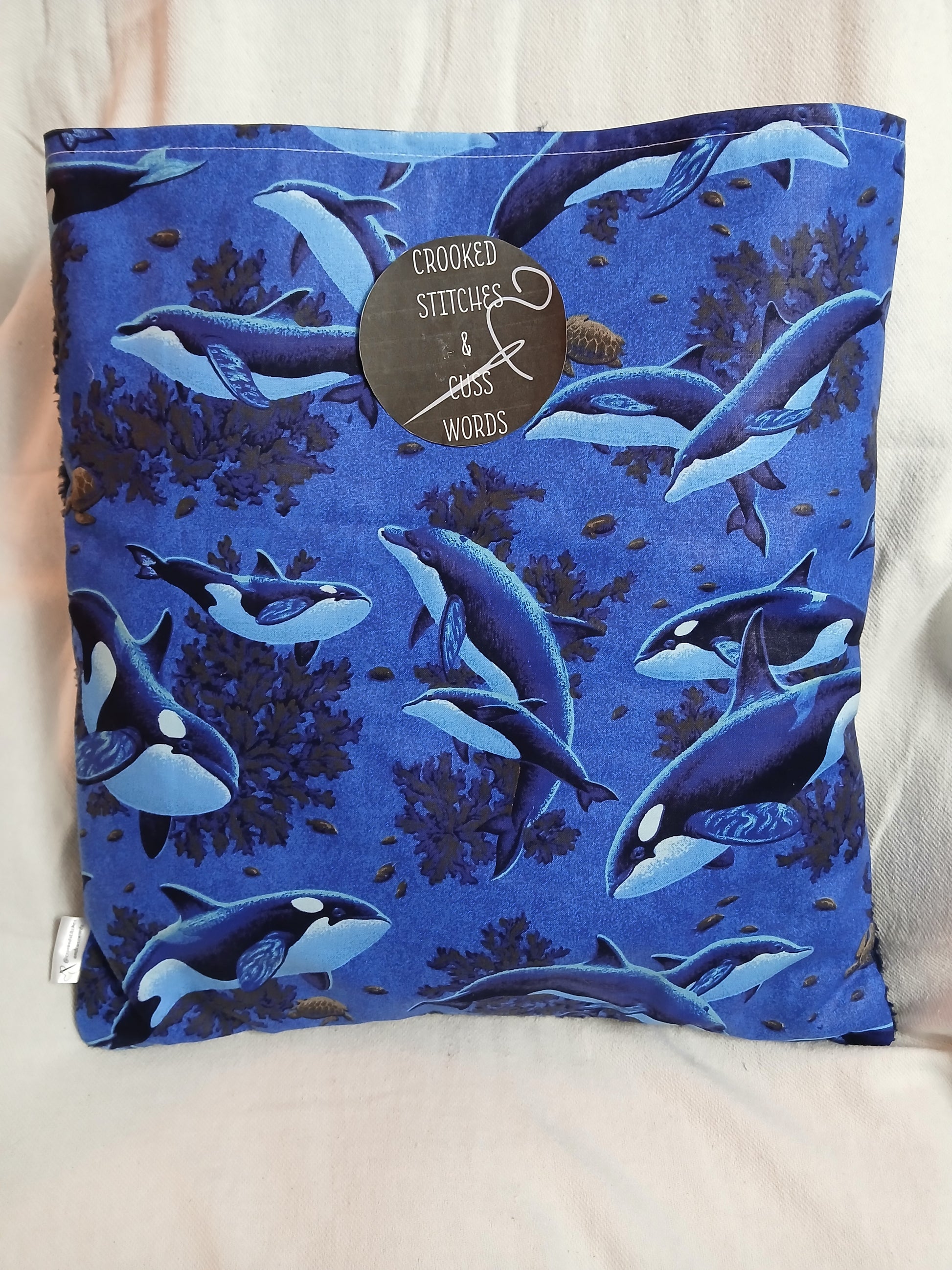 Get ready for deep, cozy sleep with the Deep ZZZs Planket. This navy blue fleece throw blanket features a soft foot pocket and an ocean-inspired design with beautiful orcas. Perfect for snuggling up, it also folds into a pillow for added comfort. Say goodbye to cold feet and hello to 50x60 of cuddly comfort. Sleep tight! Not a hooded garment.