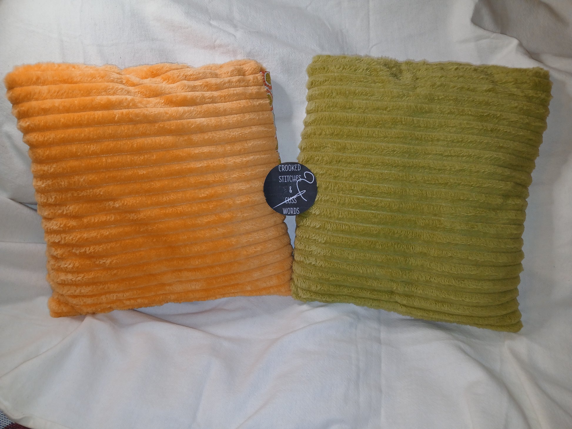 The cutest matching set you'll ever see in orange and green. Great for gift giving or keep for yourself🌼 for twice the comfort. Both are 50x60 soft fleece, fold easily into pillows and have a cozy place to put your toes when in blanket mode. Not made as hooded garment.